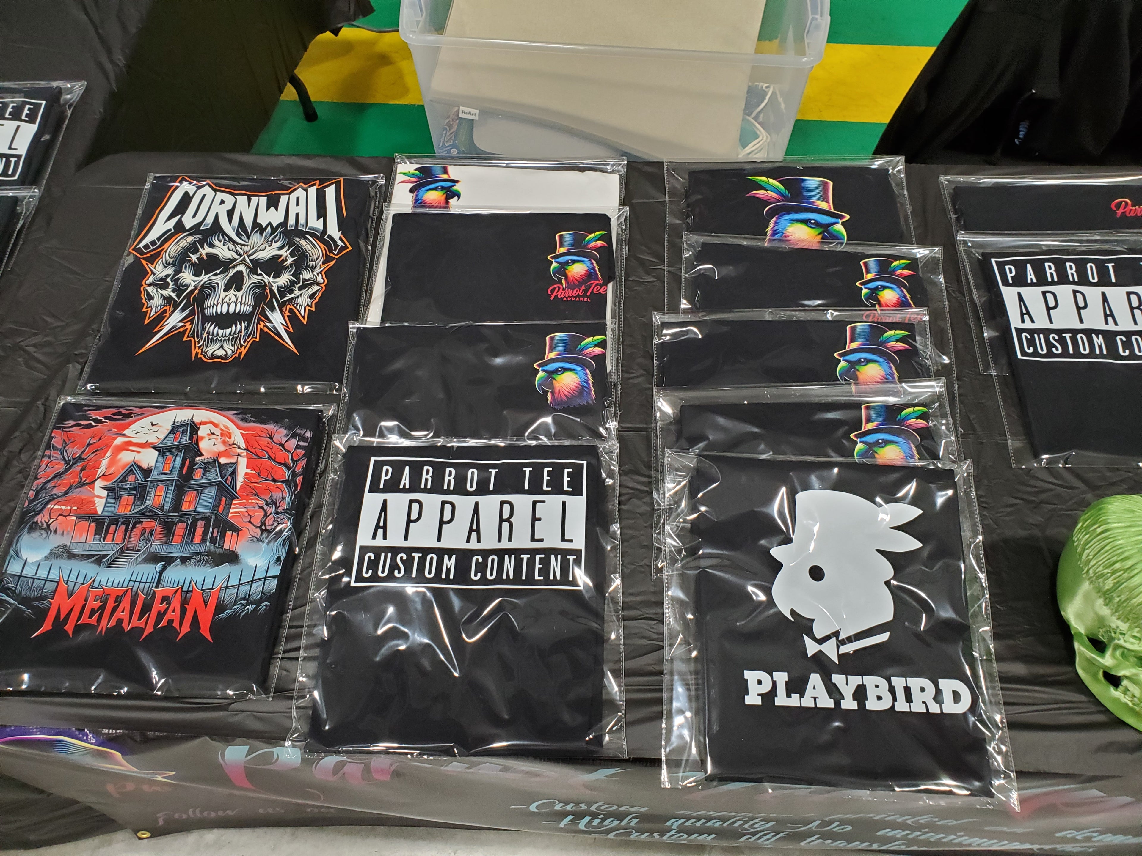 If you would like to talk about ordering custom merch from us with your own design or having us design it for you, please reach out on social media, (click the links at the top of the page) or e-mail us at Info@ParrotTee-Apparel.ca