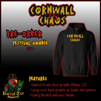 Embrace the Chaos with this Cornwall Chaos festival Hoodie! It's tradition to release a new edition of merch each year to commemorate the event. This year is our turn to bring you the drip!